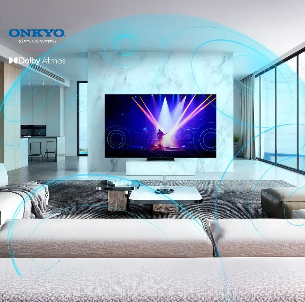 Integrierte Lautsprecher von Onkyo liefern kristallklaren Klang. Zudem wird Dolby Atmos unterstützt, was für eine beeindruckende Räumlichkeit im Klangbild sorgt.