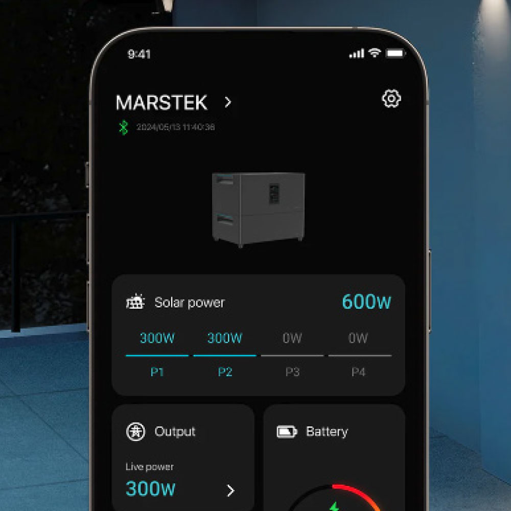 Mit der Marstek App kannst Du den Akkustatus jederzeit aus der Ferne überwachen. Zusätzlich lassen sich Betriebsmodus, Ausgabezeit und Leistung manuell anpassen. So hast Du Dein Energiemanagement vollständig unter Kontrolle und kannst Deinen Eigenverbrauch optimal steuern.