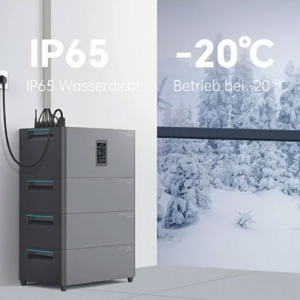 Du startest mit einer Basiskapazität von 2,56 kWh. Bei steigendem Bedarf lassen sich bis zu drei Erweiterungsakkus hinzufügen, sodass Du eine Gesamtkapazität von 10,24 kWh erreichst. Damit passt sich der Speicher perfekt an Deinen Haushalt an und bietet maximale Flexibilität.