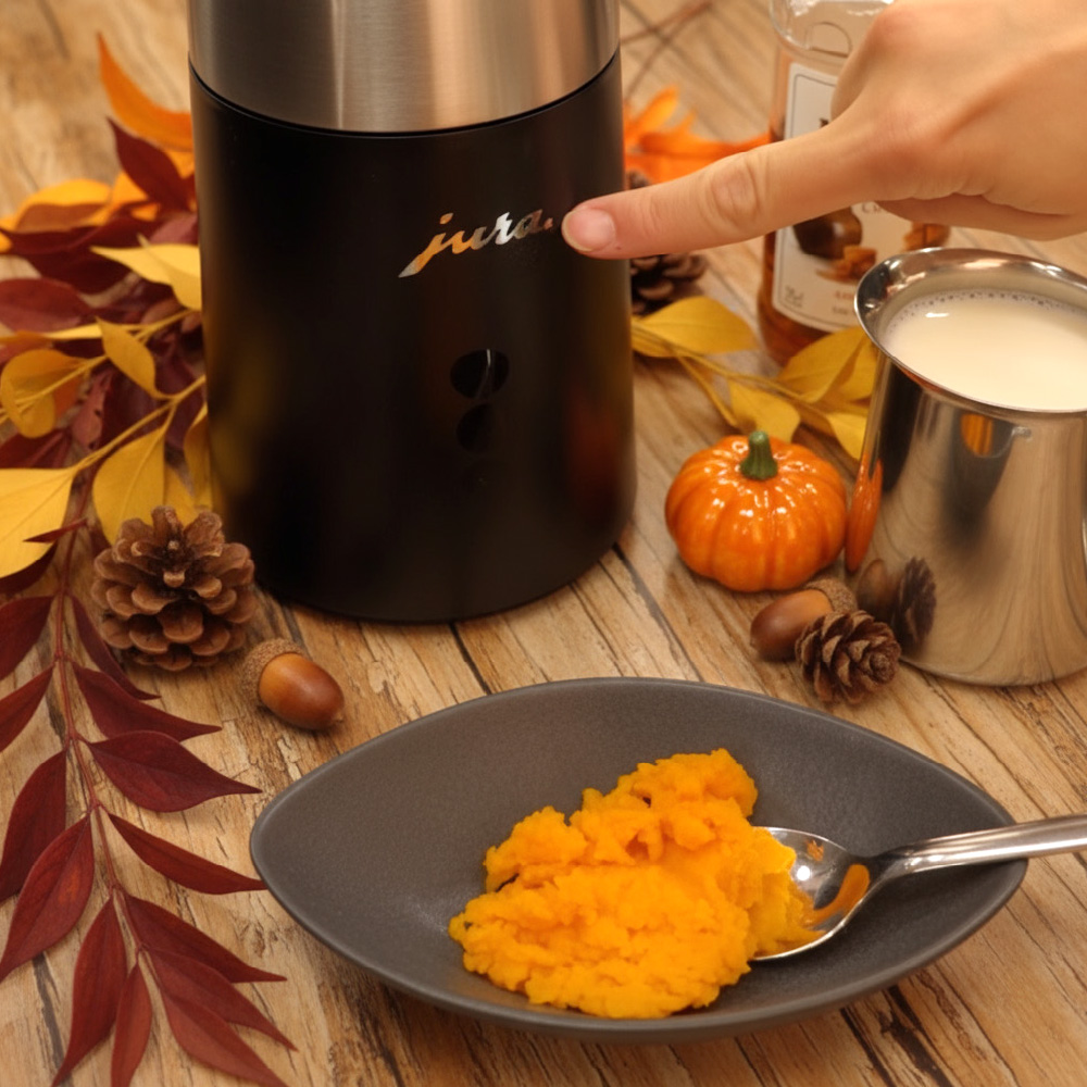Mit dem JURA Hot & Cold Milchaufschäumer kannst Du zwischen warmem und kaltem Schaum wählen – ideal, um auch Iced Pumpkin Lattes zuzubereiten oder die Milchtemperatur perfekt abzustimmen.